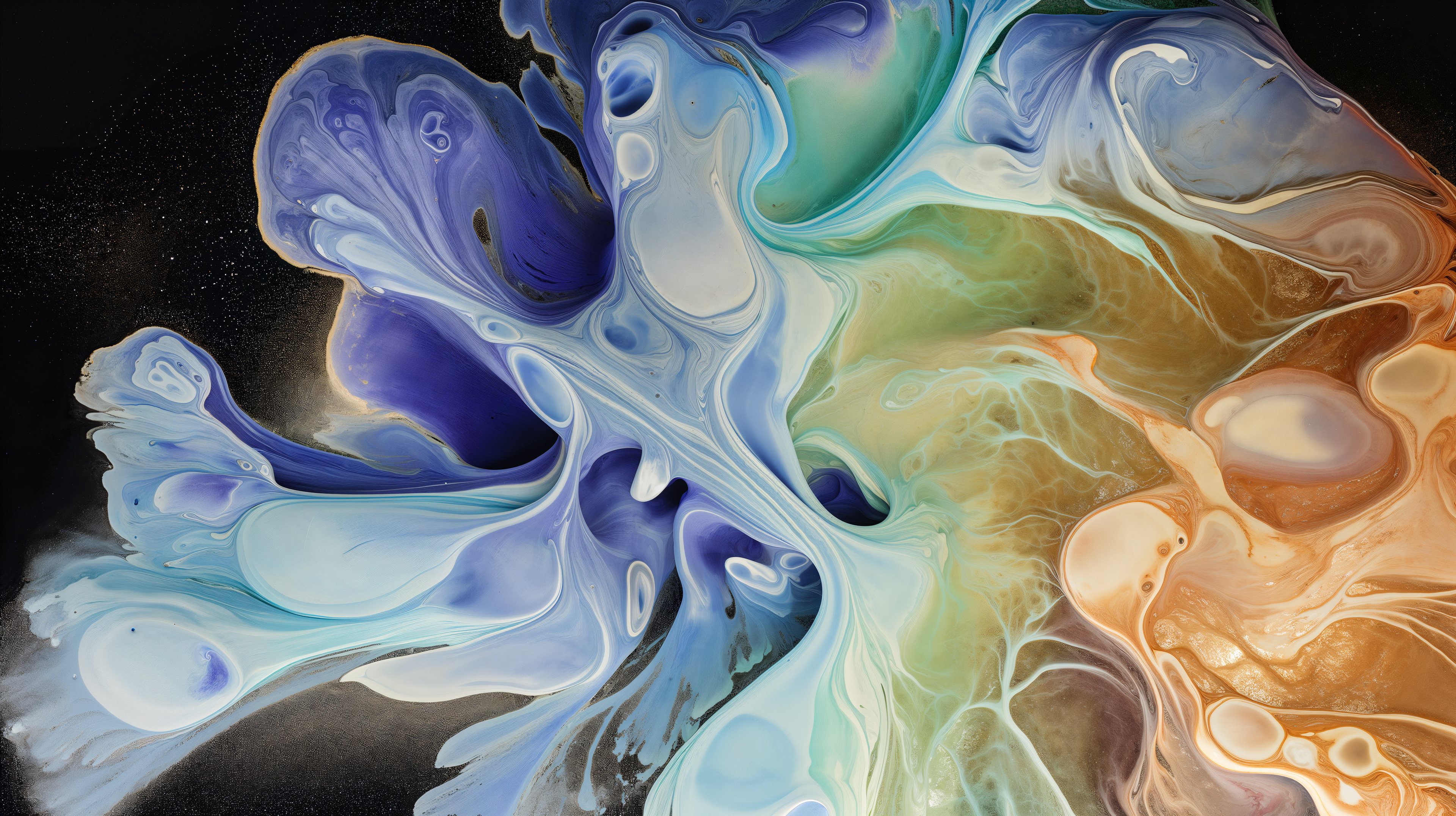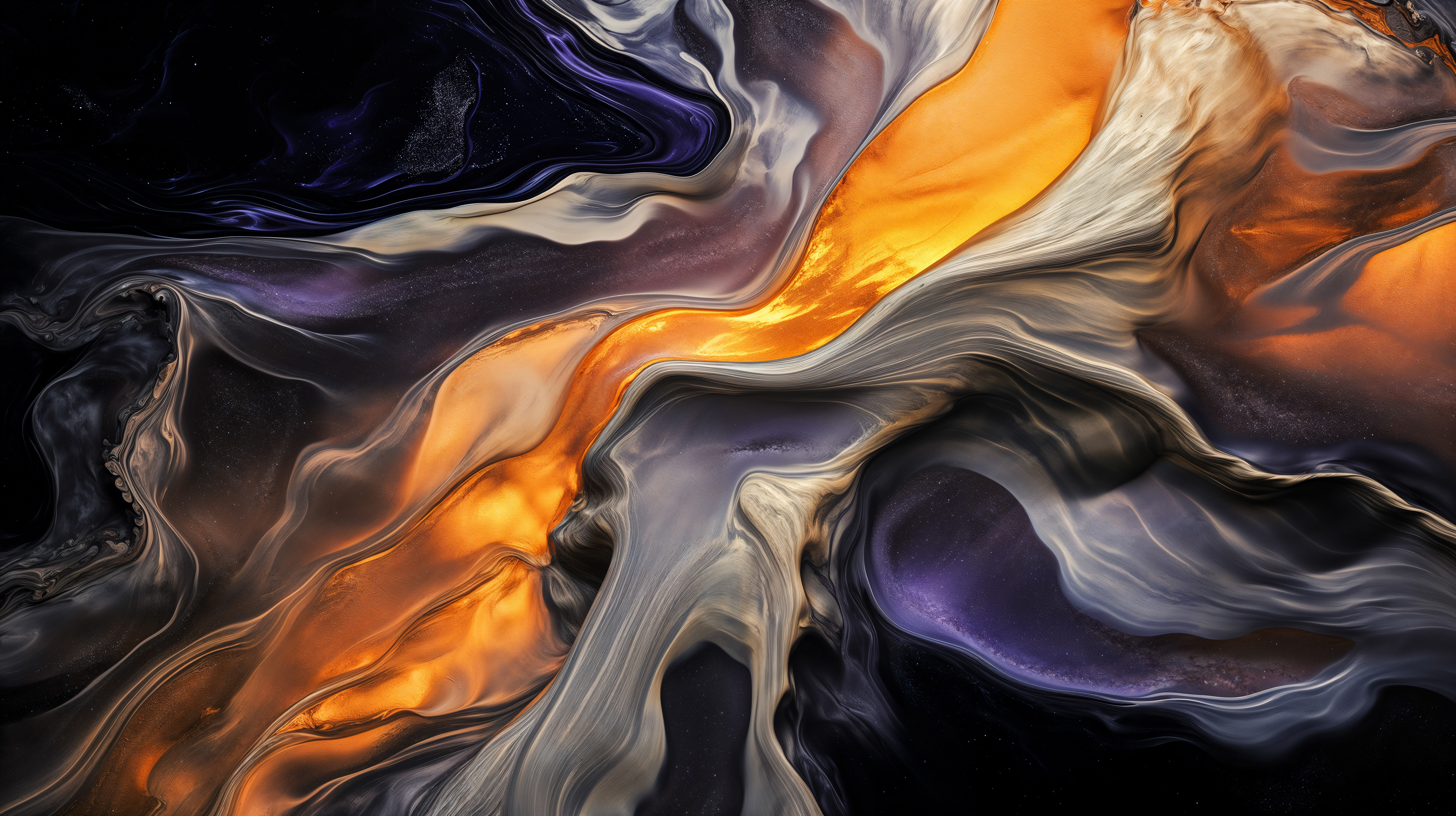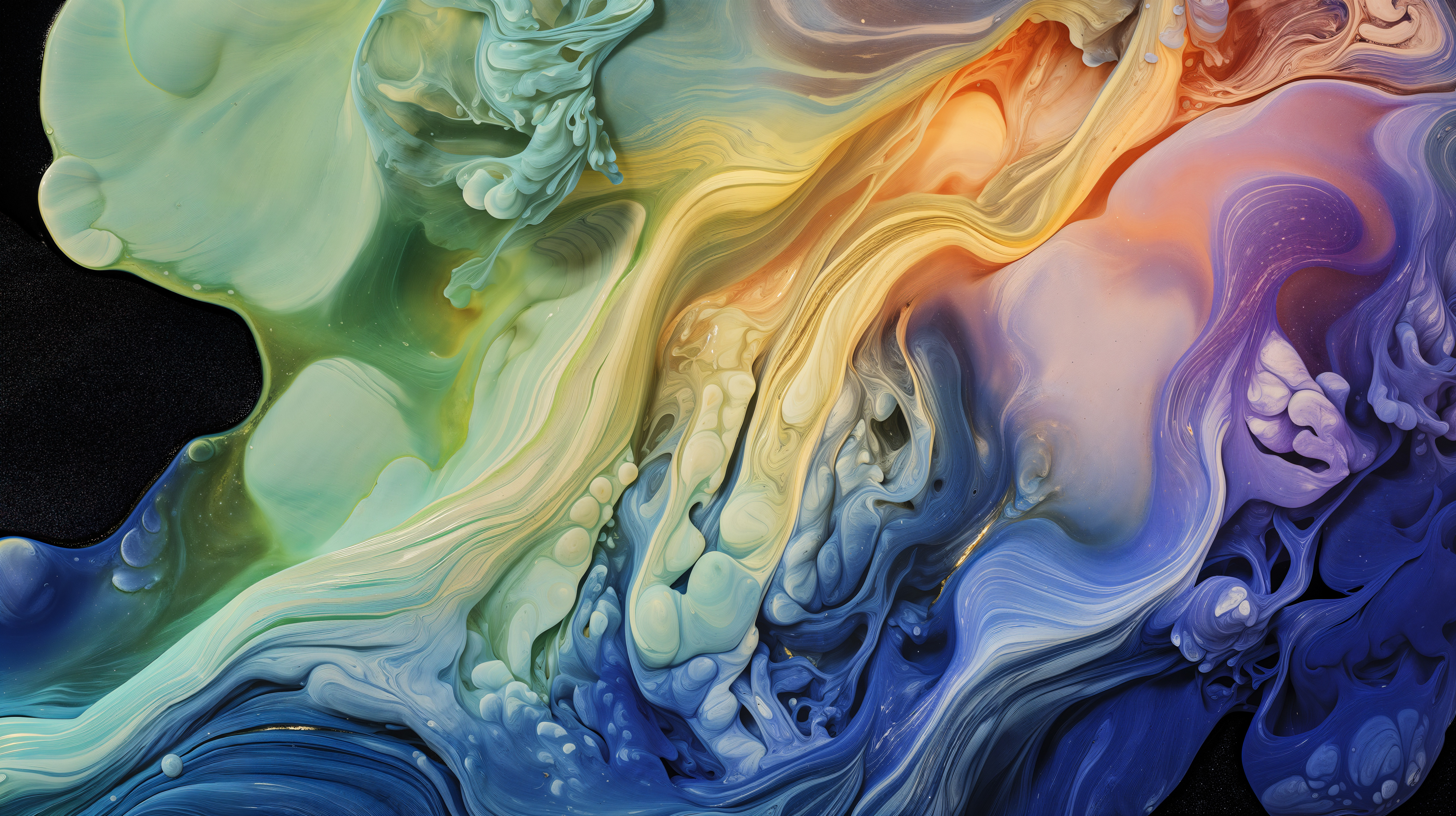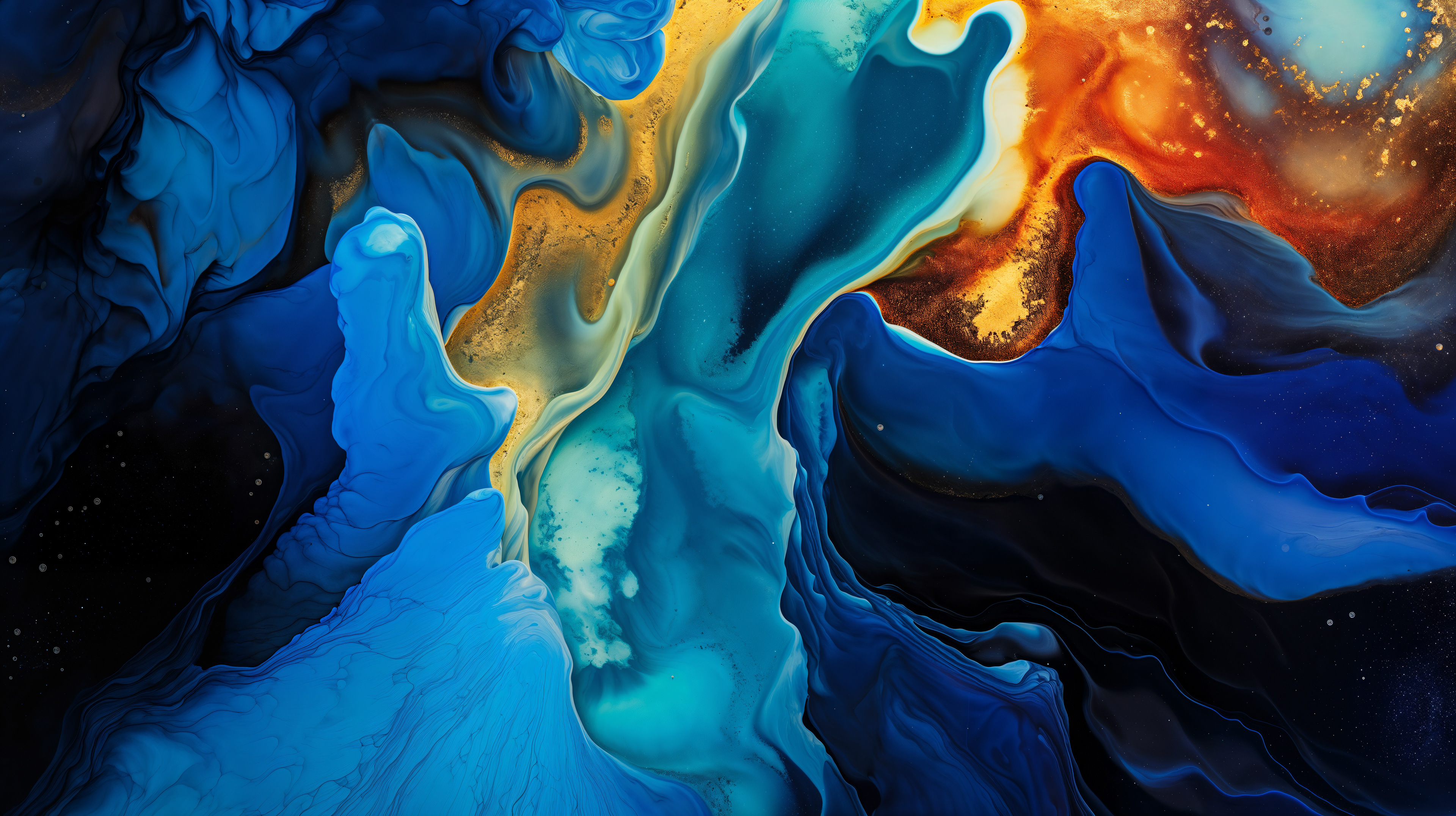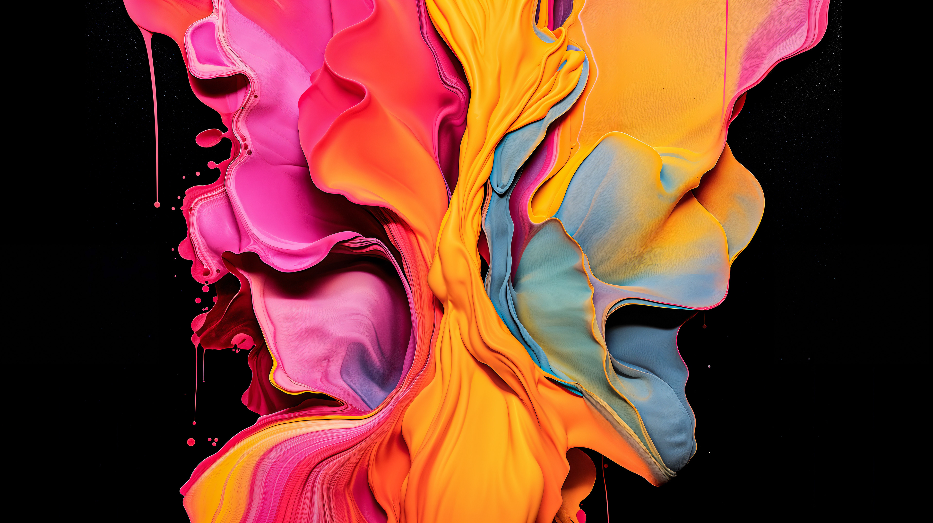 This abstract video and image series explodes into drifting clouds of molten color, where luminous magentas, electric blues, radiant oranges, and liquid gold fold into one another in slow, hypnotic motion. The forms feel both cosmic and visceral, like nebulae in transformation, revealing glowing depths and shifting surfaces that pulse with hidden energy. Each frame captures a moment of alchemy, where pigment becomes light and matter dissolves into pure movement.
