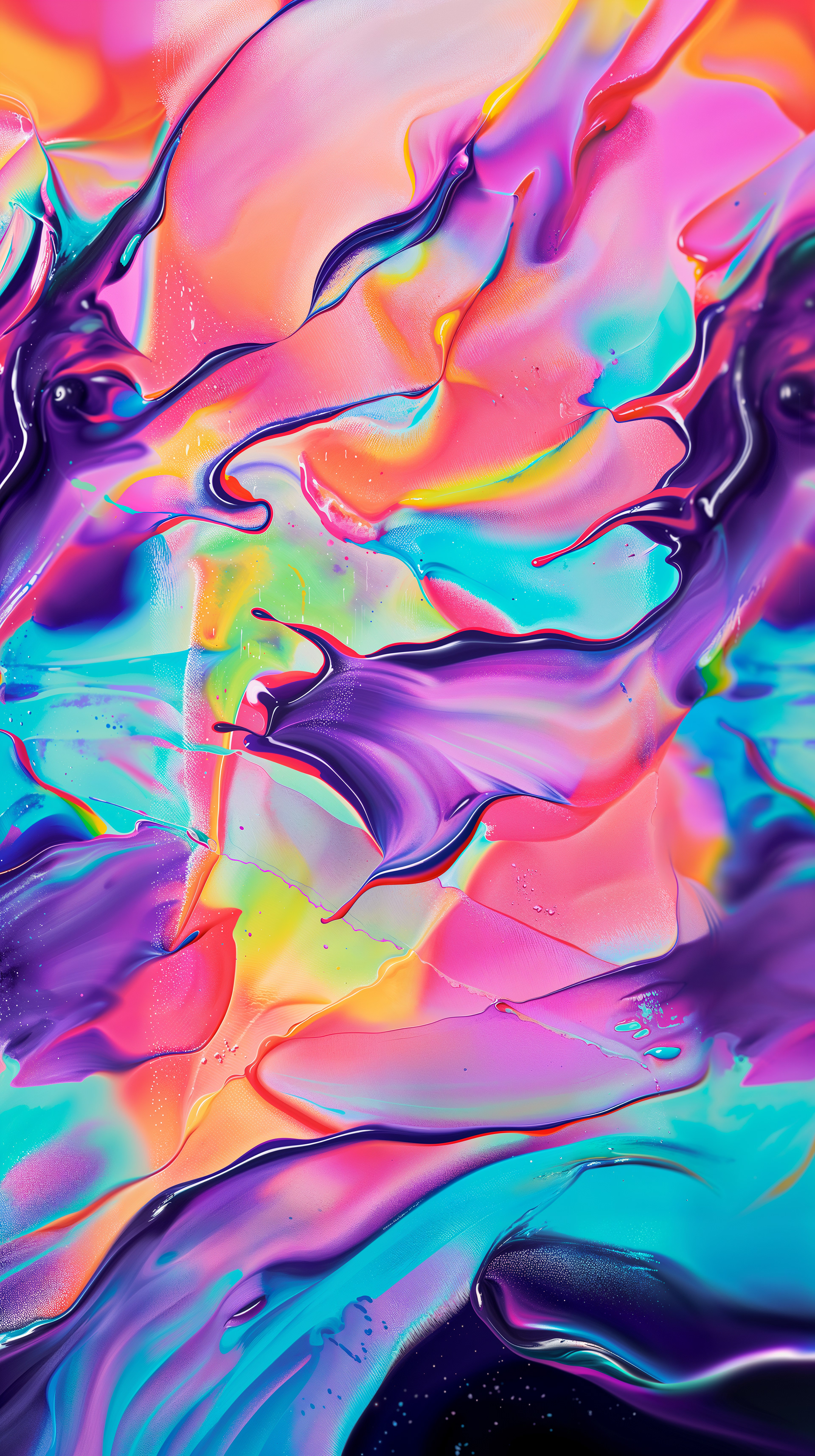 This abstract series transforms liquid-ink paintings into animated works glowing with bright, neon pastel colors. Through photography and generative experimentation, the pigments ignite into fluid motion, unfolding like radiant, shifting dreamscapes. Luminous tones swirl, blend, and expand, revealing ethereal textures that feel both cosmic and painterly. Each piece becomes a vibrant, living painting brought to life through movement, light, and atmospheric color.
