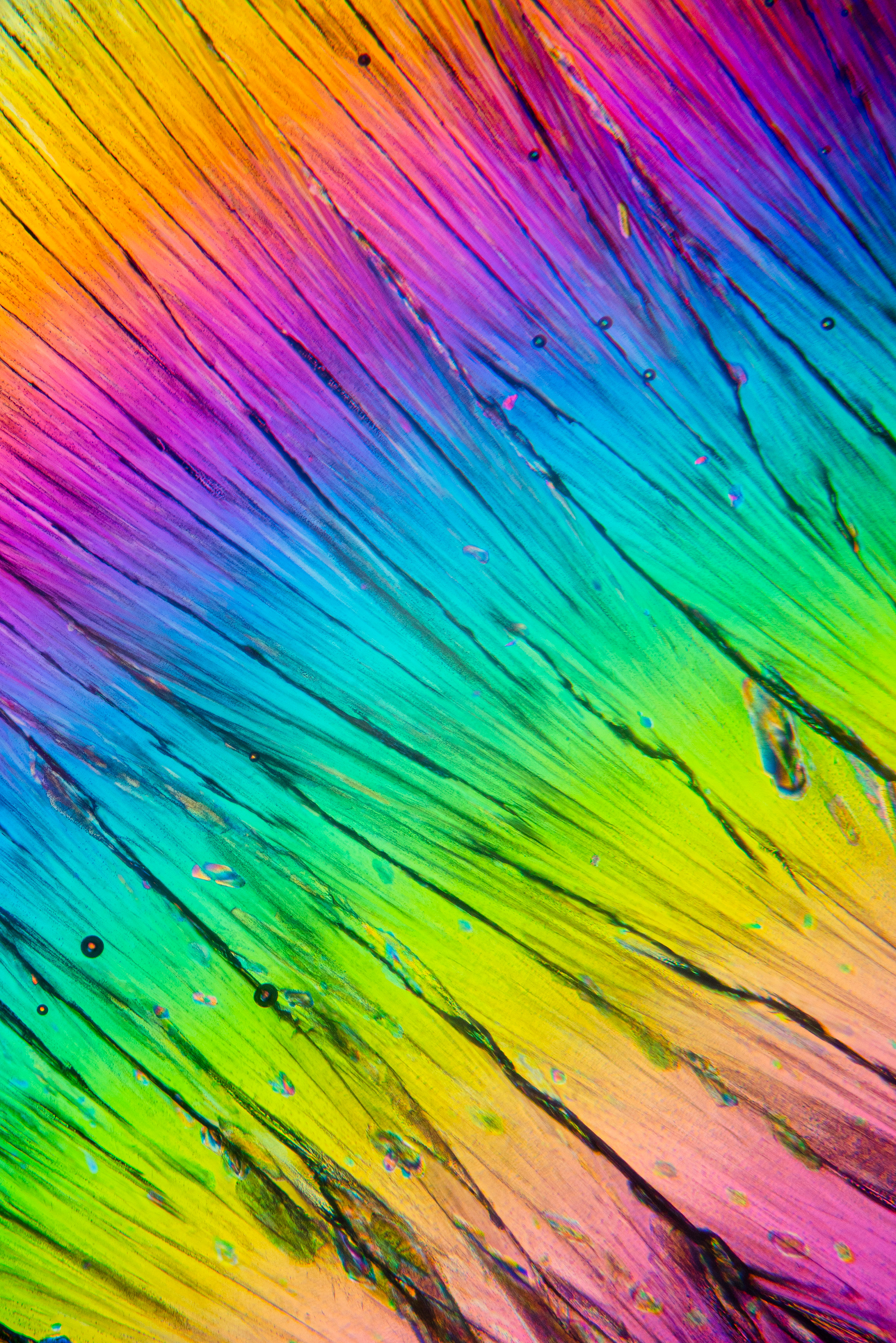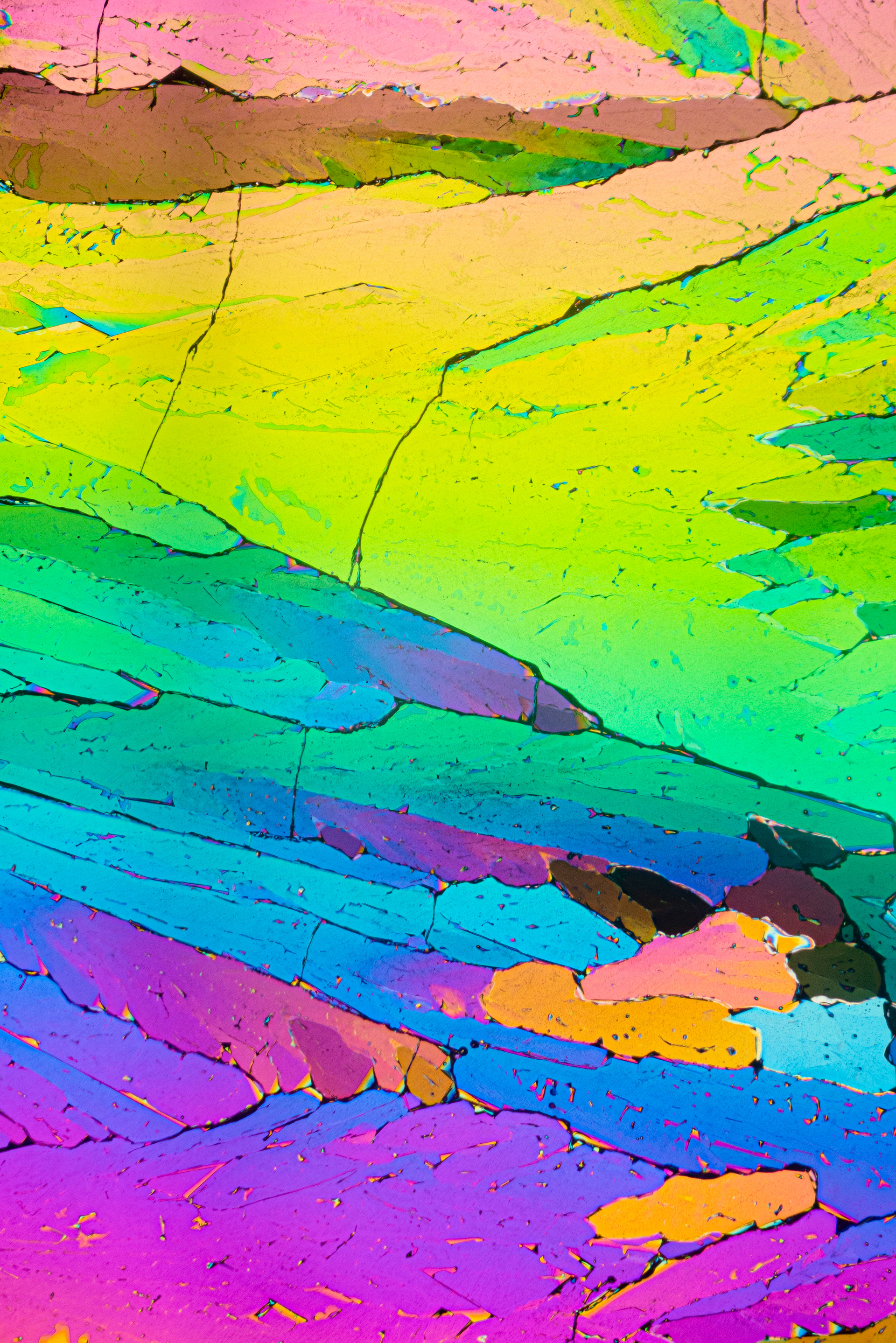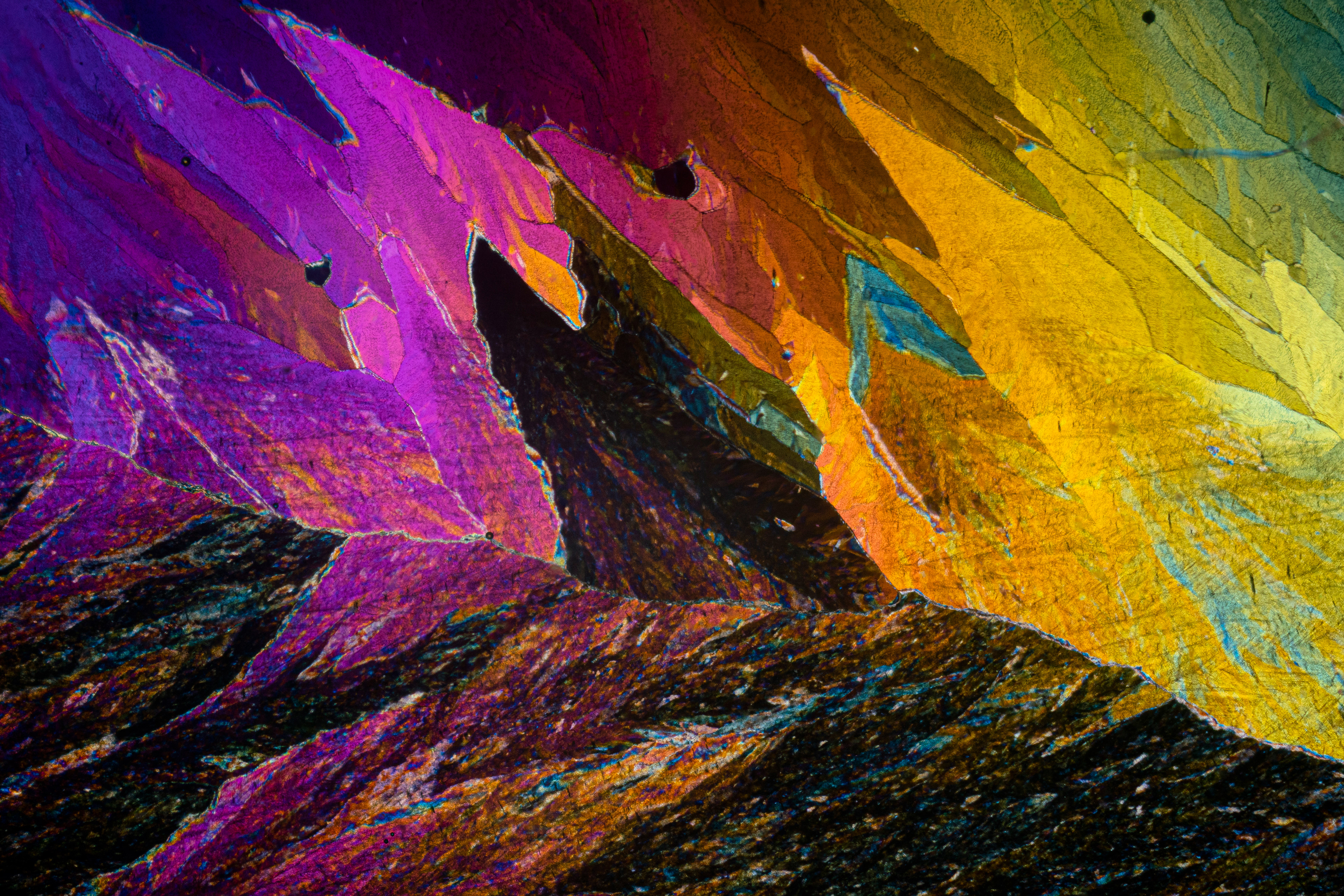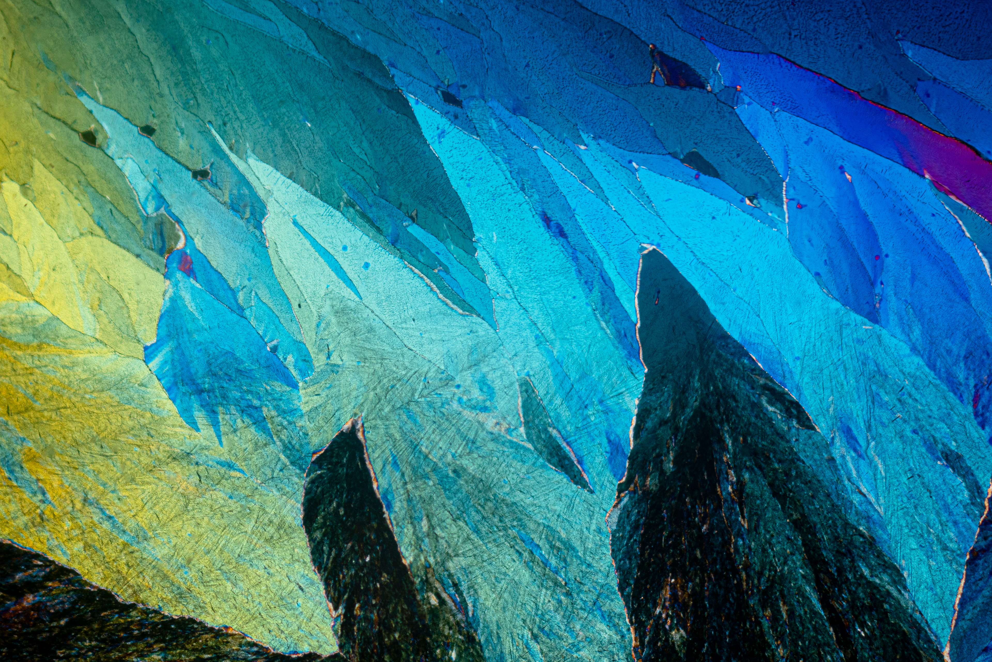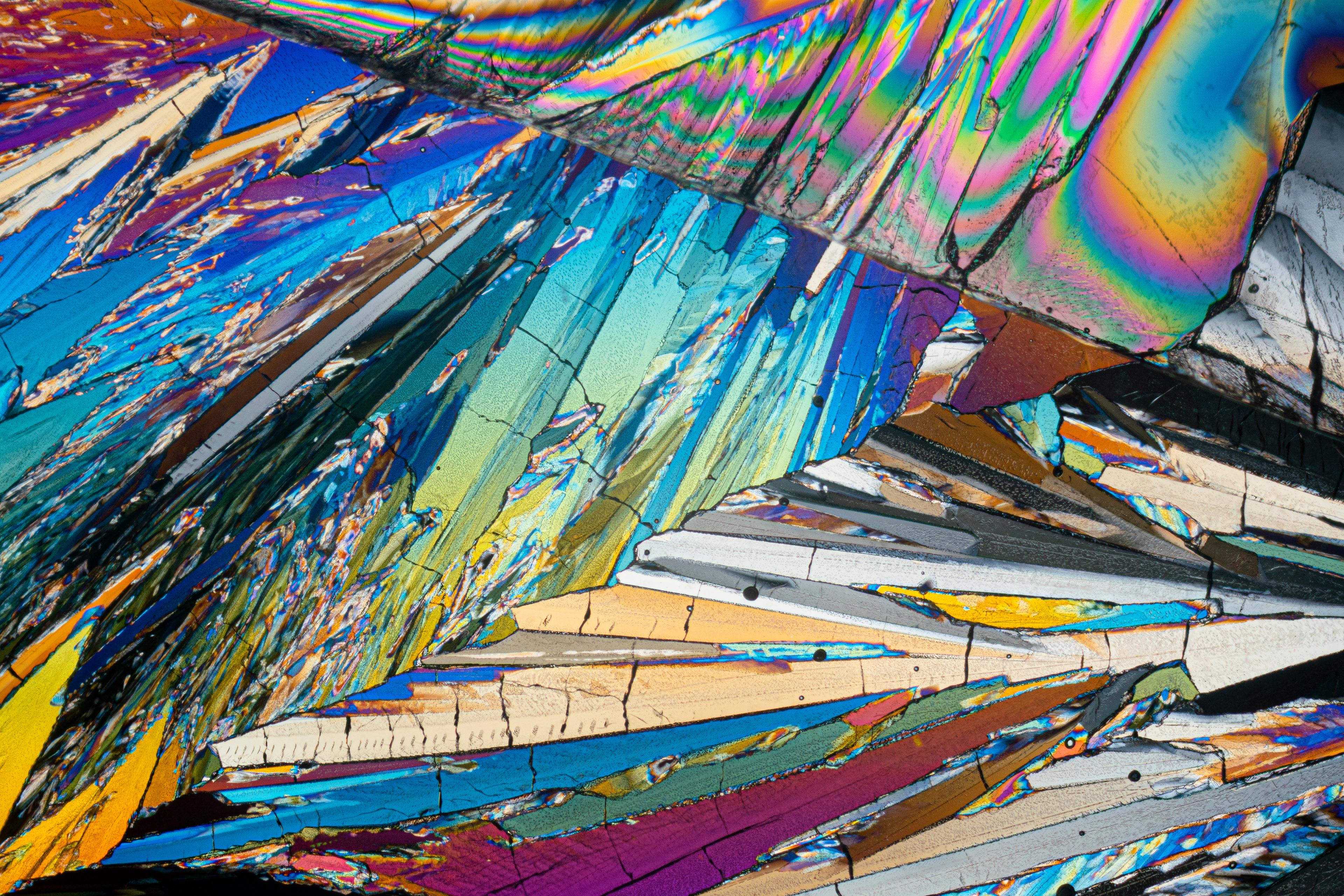 Crystalized erythrit, a sugar replacement, as seen under the microscope in polarized light