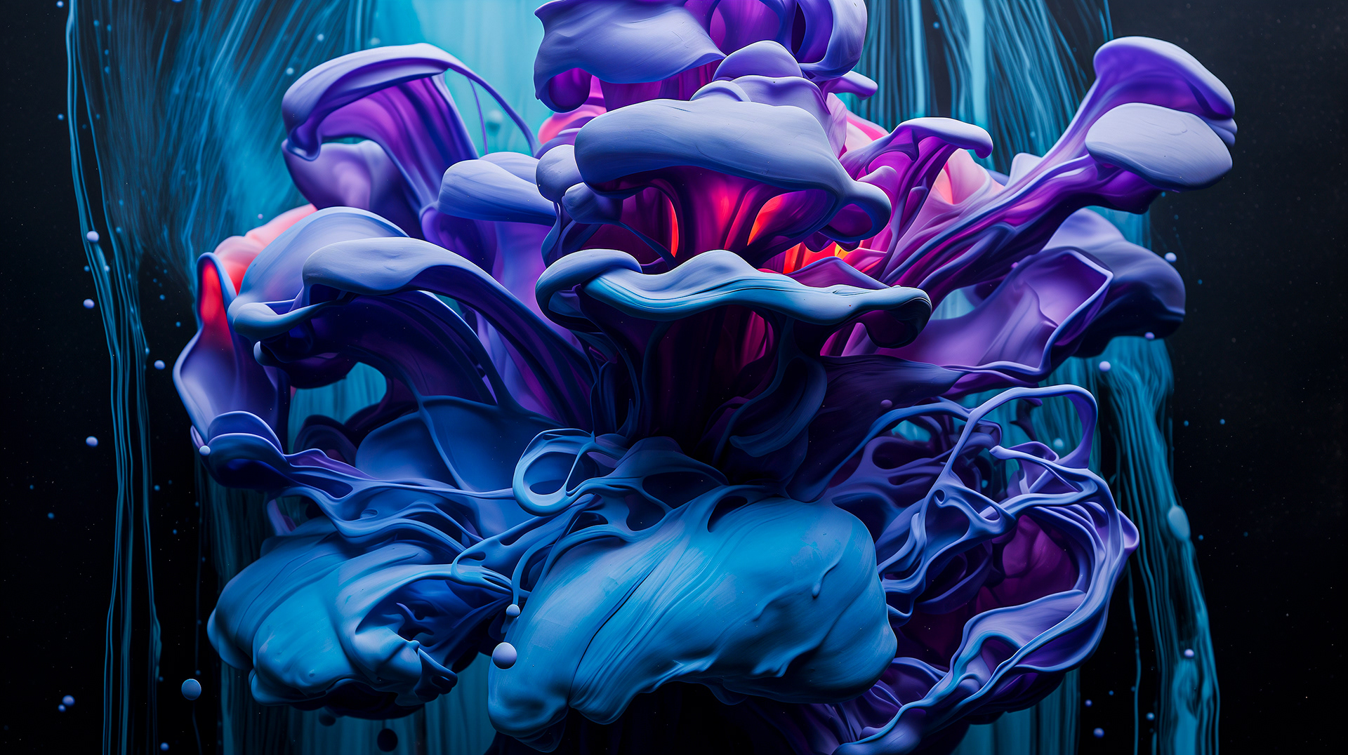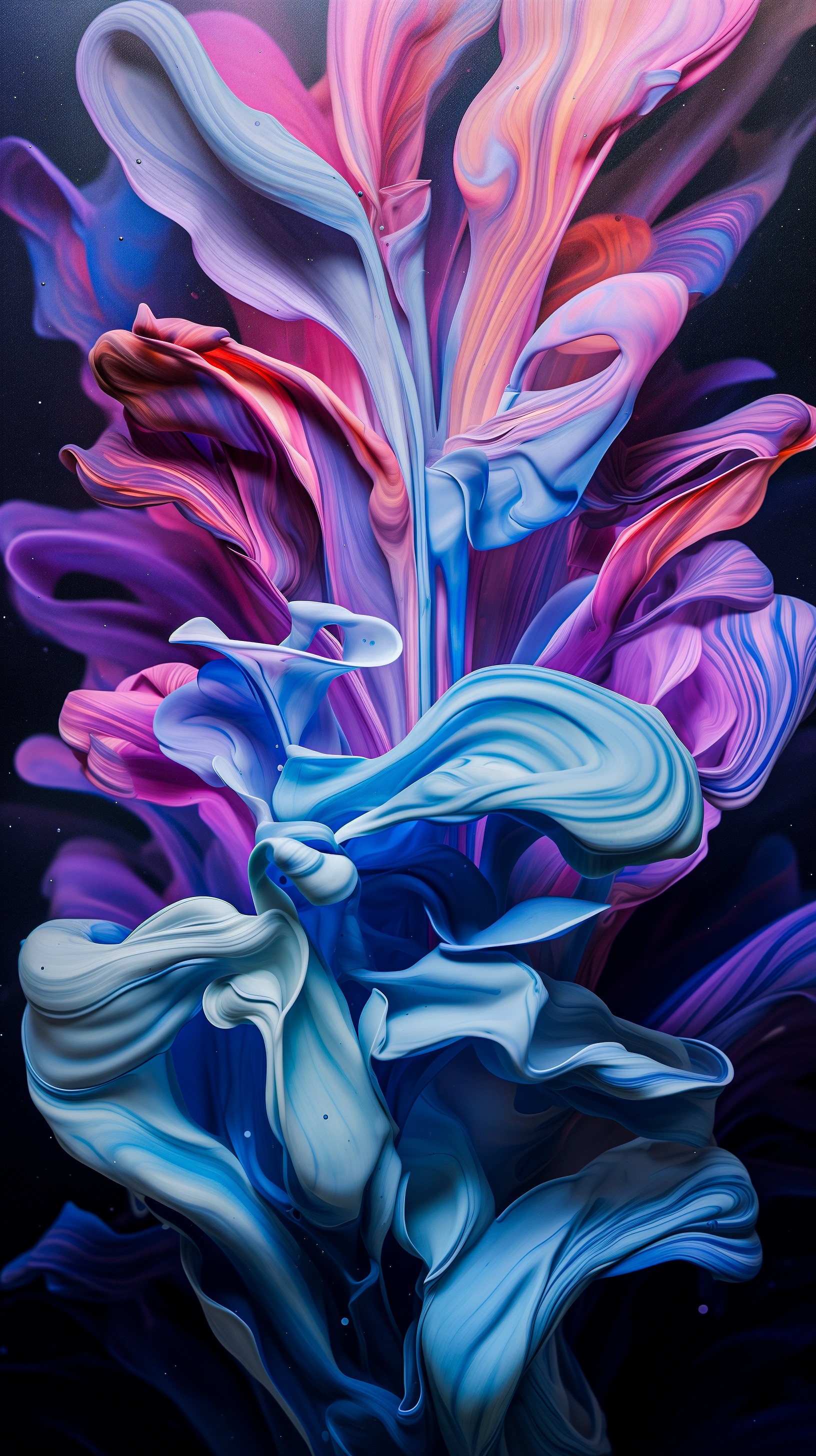 This abstract series transforms liquid ink paintings into animated works alive with bright, vibrant colors and drifting, cloud-ink movements. Through photography and generative experimentation, the pigments billow, swirl, and expand like luminous vapor, unfolding into fluid, dreamlike formations. Soft yet vibrant tones blend into cosmic, painterly textures, turning each piece into a living, breathing painting shaped by motion, light, and atmospheric color.